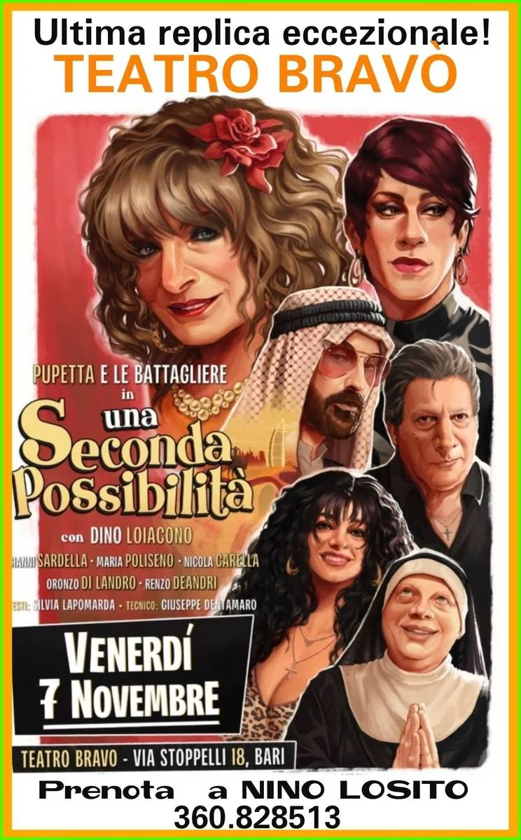 Teatro Bravò è un teatro situato a Bari, Italia, noto per la sua programmazione variegata che include spettacoli teatrali, musicali e di cabaret. La direzione artistica è affidata ad Angelica Gregucci. Il teatro ospita rassegne come ‘Musica e risate’, curata dall’associazione culturale Echo Events diretta da Donato Sasso, e offre laboratori teatrali e di scrittura per giovani e adulti. Nel 2024, ha inaugurato una sede estiva in collaborazione con lo Stardust, situata in via Massimi Losacco 4, per offrire eventi all’aperto che combinano spettacolo ed enogastronomia.