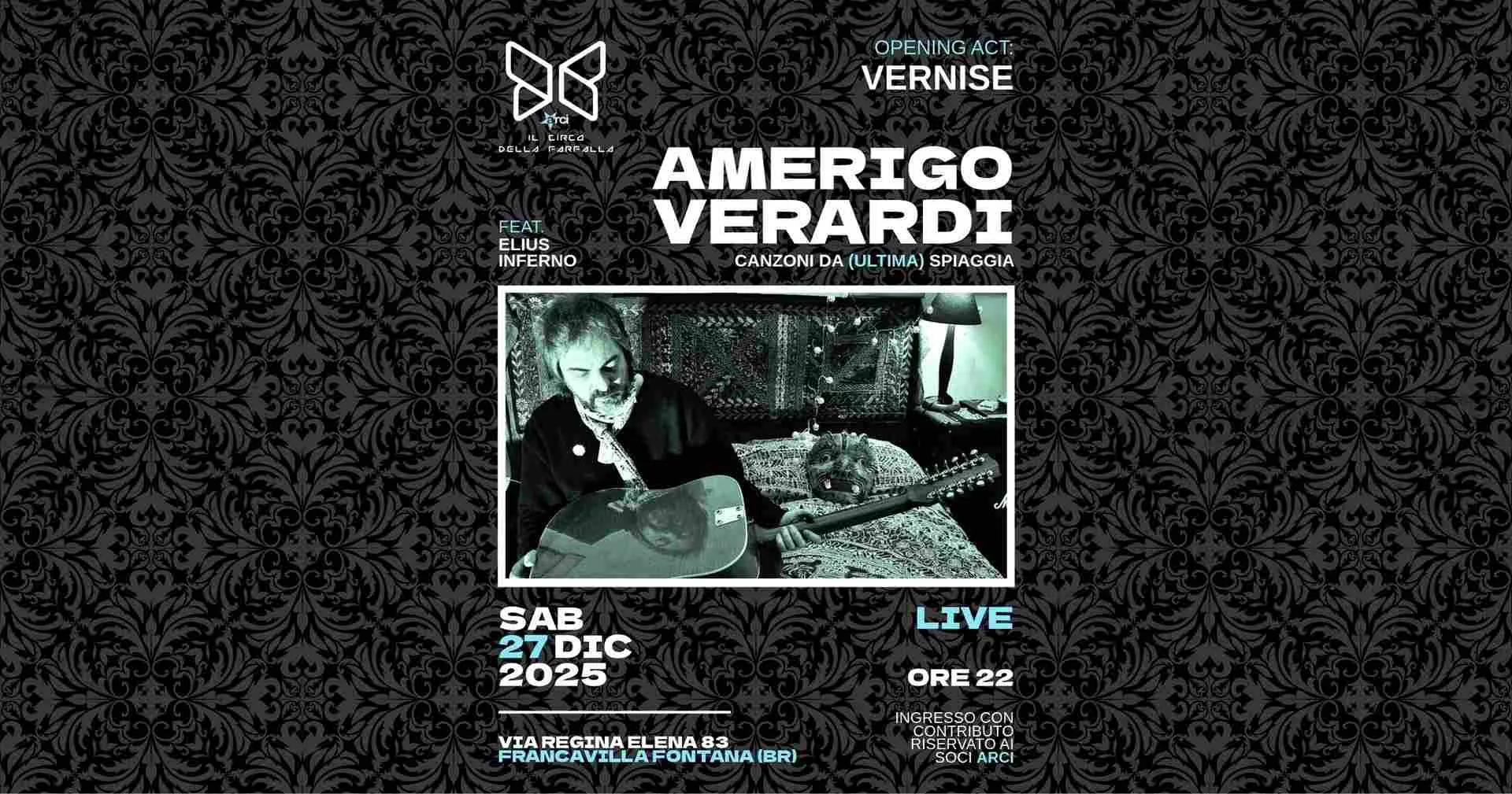 Accompagnato da Elius Inferno, Verardi propone una rivisitazione di canzoni iconiche tratte dal suo ampio repertorio, in versione minimale e intima.