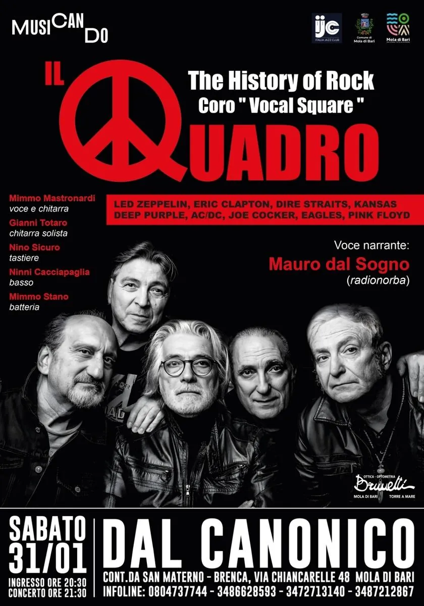 Il Quadro presenta uno spettacolo musicale dedicato all’epopea del rock tra anni ’60 e ’70, eseguendo grandi classici che hanno segnato generazioni.