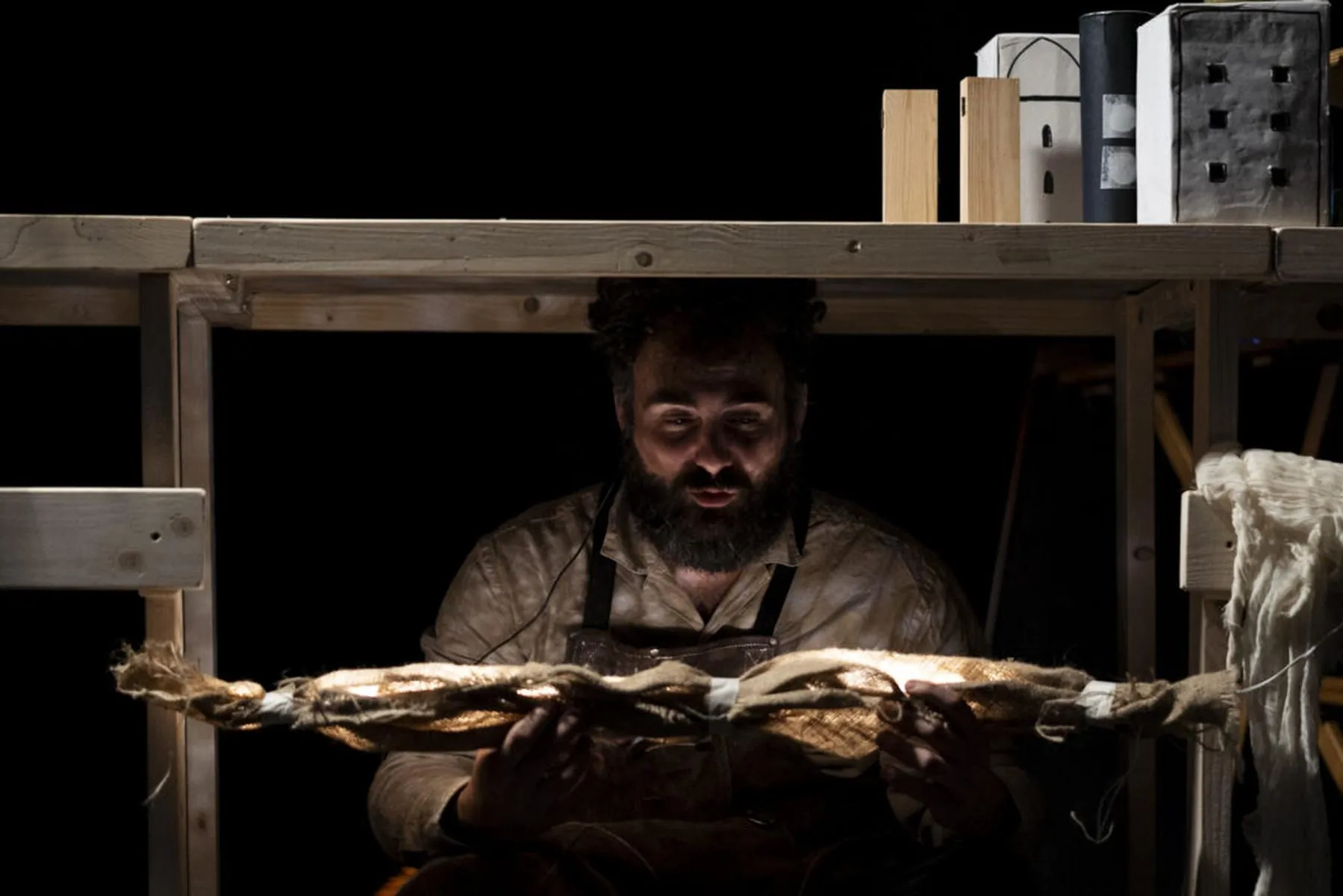 Al centro vi è un burattinaio-narratore-artigiano che interpreta tutte le divinità protagoniste, da Zeus ad Afrodite, illustrando con ironia le dinamiche tra degli e mortali e la genesi delle creature terrestri.