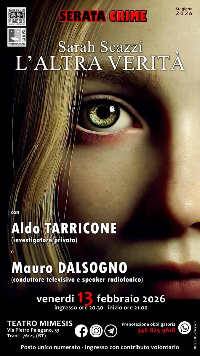 L’evento offre una serata crime originale, centrata sulla presentazione del libro e delle indagini alternative raccontate da Aldo Tarricone, noto investigatore privato e autore de ‘L’Altra Verità’.
