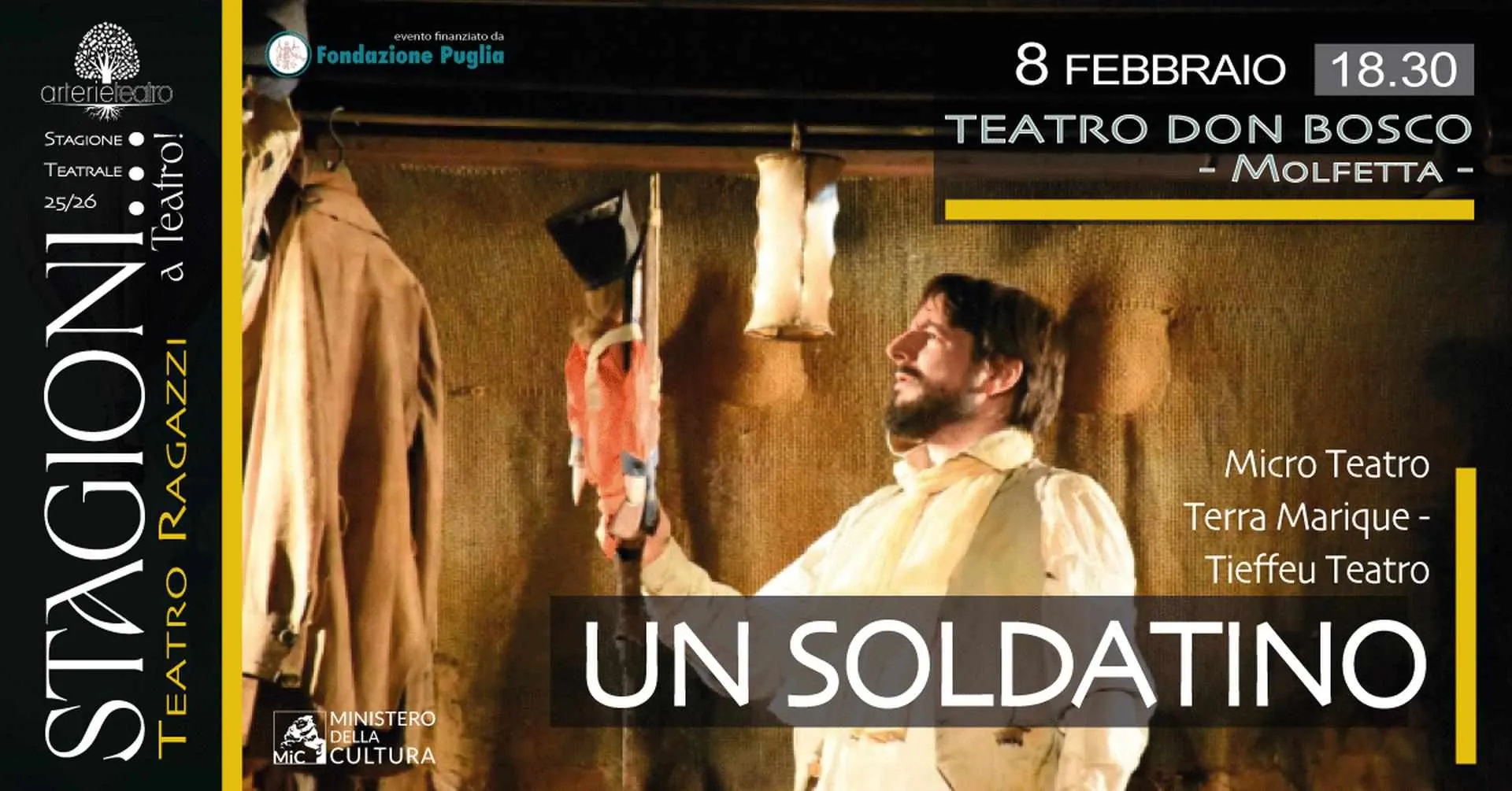 “Un Soldatino” è uno spettacolo teatrale dedicato a ragazzi che reinterpreta la famosa fiaba di Andersen con uno sguardo contemporaneo, intrecciando la storia classica con tematiche attuali come la migrazione e la speranza.