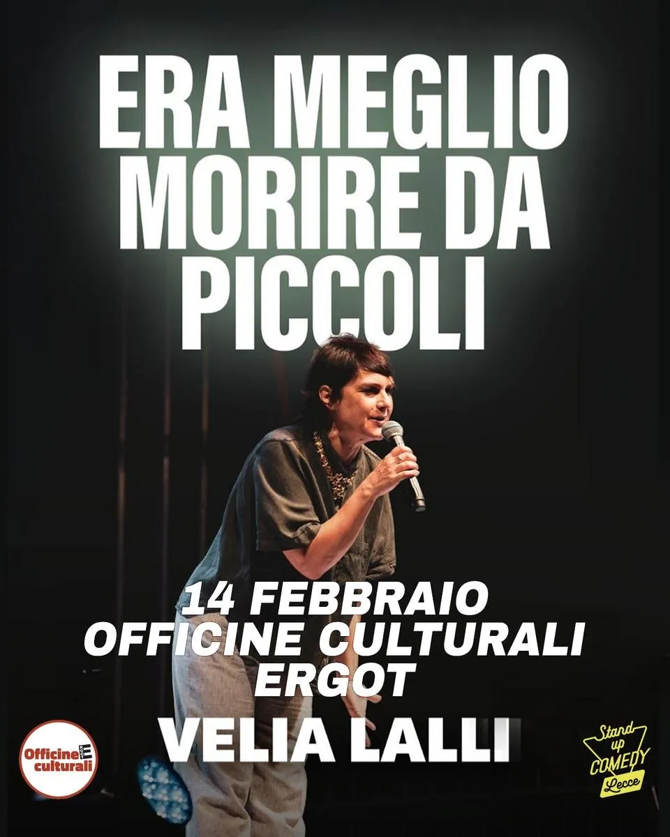 Velia Lalli, considerata la ‘Santa Patrona’ della stand-up comedy italiana, porta in scena lo show “Era Meglio Morire da Piccoli”.