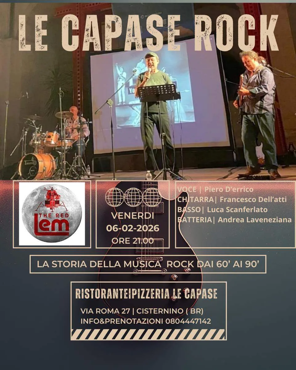 In scena la band The Red Lem, composta da musicisti esperti che propongono dal vivo i brani più emblematici dagli anni ’60 ai ’90, alternando le esecuzioni a momenti di racconto in grado di trasmettere il contesto e l’evoluzione del rock.
