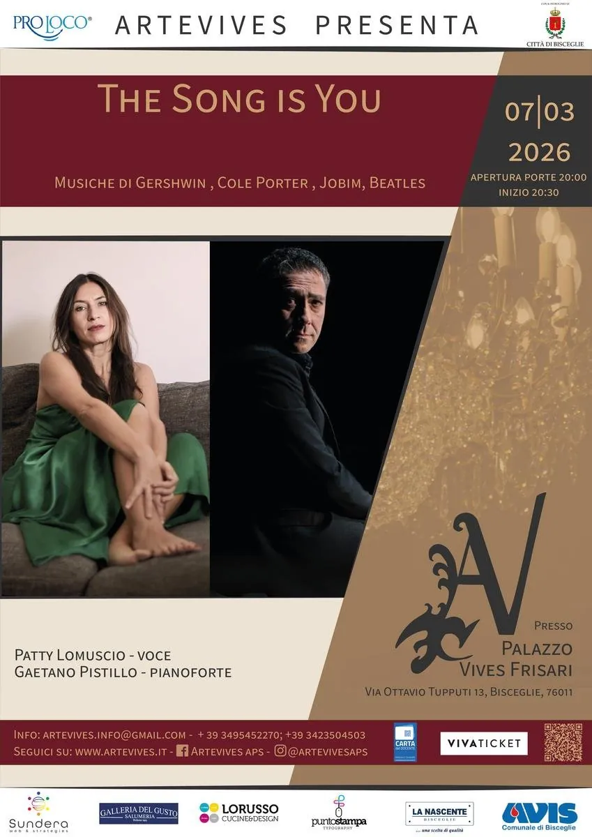 L’evento propone un viaggio sonoro attraverso i capolavori di autori come Gershwin, Cole Porter, Jobim e i Beatles, eseguiti con sensibilità e finezza da Patty Lomuscio alla voce e Gaetano Pistillo al pianoforte.